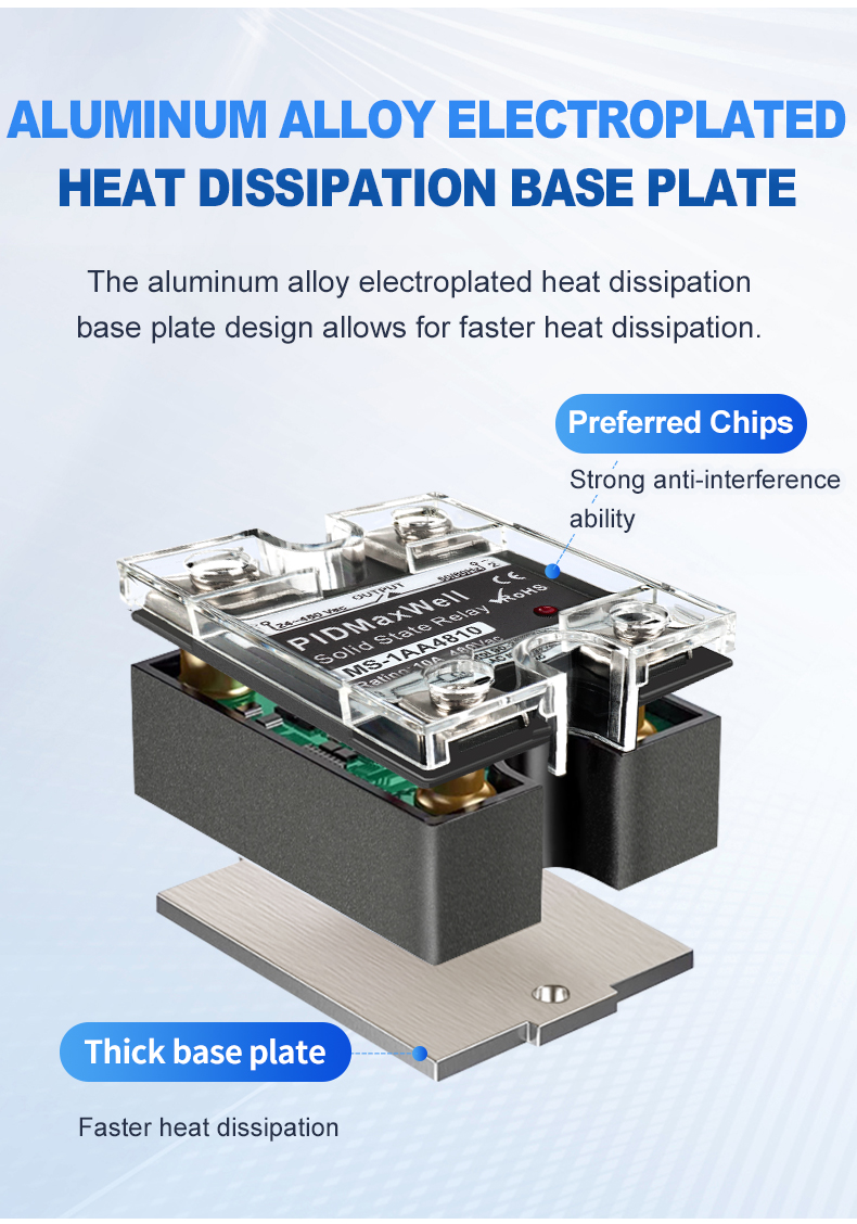 | Componentes de comutação de alta qualidade | Utiliza TRIAC de alta qualidade para modelos de 10A a 40A; configuração SCR em configuração back-to-back para modelos de 60A e superiores. |