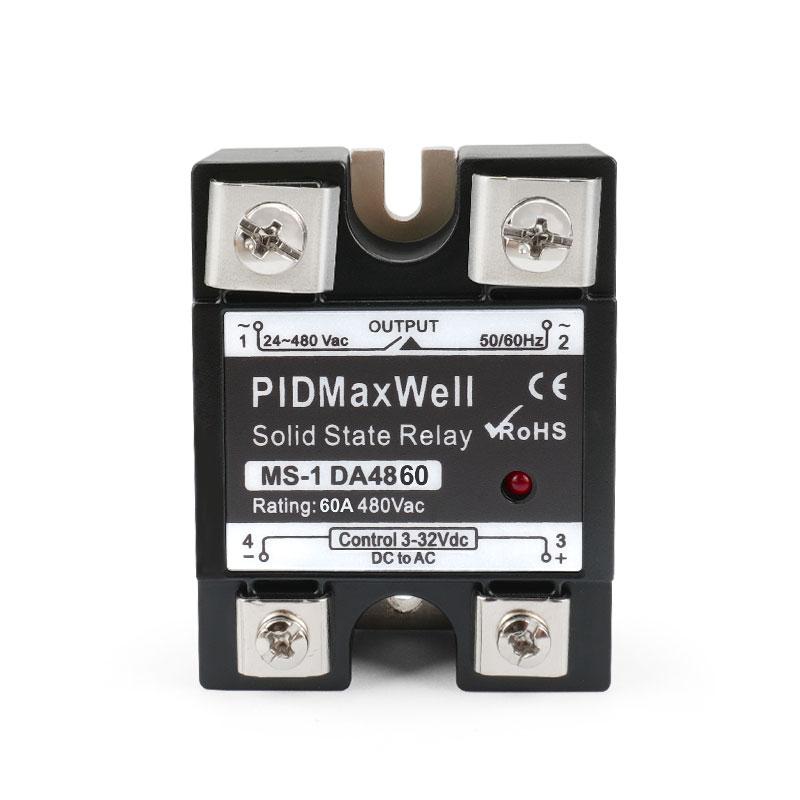 A série Maxwell MS-1DA48 é um relé de estado sólido monofásico de alto desempenho, CC para CA, projetado para comutação confiável e eficiente em ambientes industriais exigentes. Com uma ampla faixa de entrada de controle de 3,2 a 32 VCC e uma robusta capacidade de tensão de carga de 24 a 480 VCA, este relé para montagem em painel foi projetado para interfacear-se perfeitamente com microcontroladores, PLCs e outros dispositivos lógicos de baixa tensão. Ele utiliza tecnologia avançada de disparo por cruzamento zero e incorpora um circuito snubber RC integrado em todas as classificações de amperagem, garantindo operação silenciosa e proteção superior contra picos de tensão transitórios. Alojado em uma caixa compacta de ABS retardante de chamas e completamente selado com resina para máximo isolamento, a série MS-1DA48 garante durabilidade e segurança excepcionais em ambientes agressivos. Com opções de corrente de carga que variam de 10 A a 120 A, é a solução ideal para controle preciso em sistemas de aquecimento, máquinas para plásticos, HVAC e diversos processos industriais automatizados. Todos os modelos estão em conformidade com as normas CE, CCC e RoHS.
