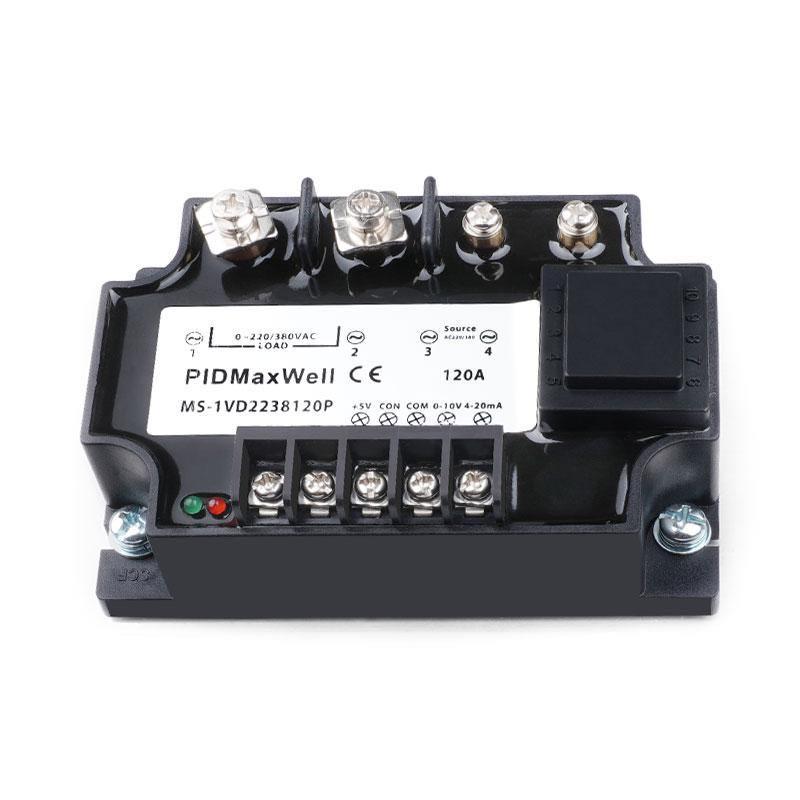 A série MS-1VD2238 da Maxwell é um regulador de potência SCR monofásico isolado de alta precisão e excelente custo-benefício, projetado para controle preciso do ângulo de fase. Com um design versátil de múltiplas entradas, este módulo tiristor avançado suporta simultaneamente sinais de 0-5 Vcc, 0-10 Vcc, 4-20 mA e controle de potenciômetro sem a necessidade de modificações de hardware. Projetado com isolamento óptico entre os circuitos de entrada e saída, garante máxima segurança operacional e integridade do sinal. Disponível em uma ampla faixa de corrente de 10 A a 200 A para cargas de 220 Vca e 380 Vca, a série MS-1VD2238 incorpora um circuito de partida suave integrado e um buffer interno (snubber) para proteção contra surtos de tensão. Alojado em uma caixa durável e resistente ao fogo com vedação em resina, este regulador para montagem em painel é a solução ideal para controlar elementos de aquecimento resistivo em ambientes industriais exigentes.