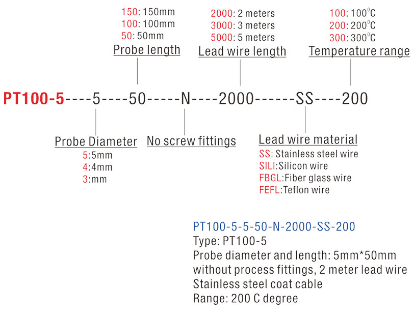 PT100-5 – [①] – [②] – N – [③] – [④] – [⑤]