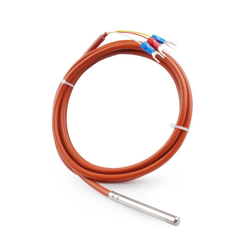 | PT100-5-6-100-N-2000-SILI-200 | Cabo de silicone de 6 mm de diâmetro (personalizado), 100 mm de comprimento, 2 m de largura, 200 °C — Diâmetro personalizado |